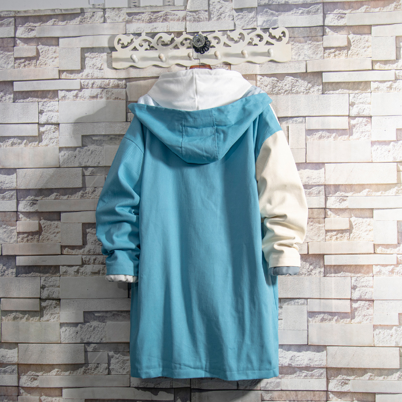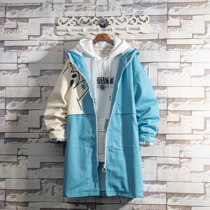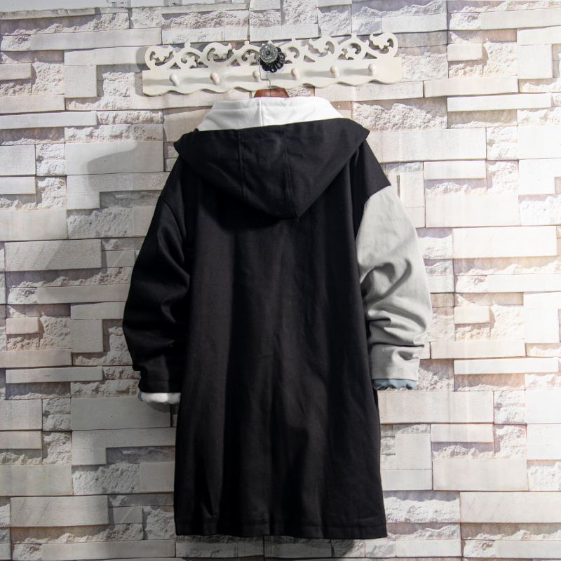 The Japan Autumn Winter New Tandem Hat Windsuit Men's Gush Korean version of the Porto Wind Ins trend The long version of the handsome jacket