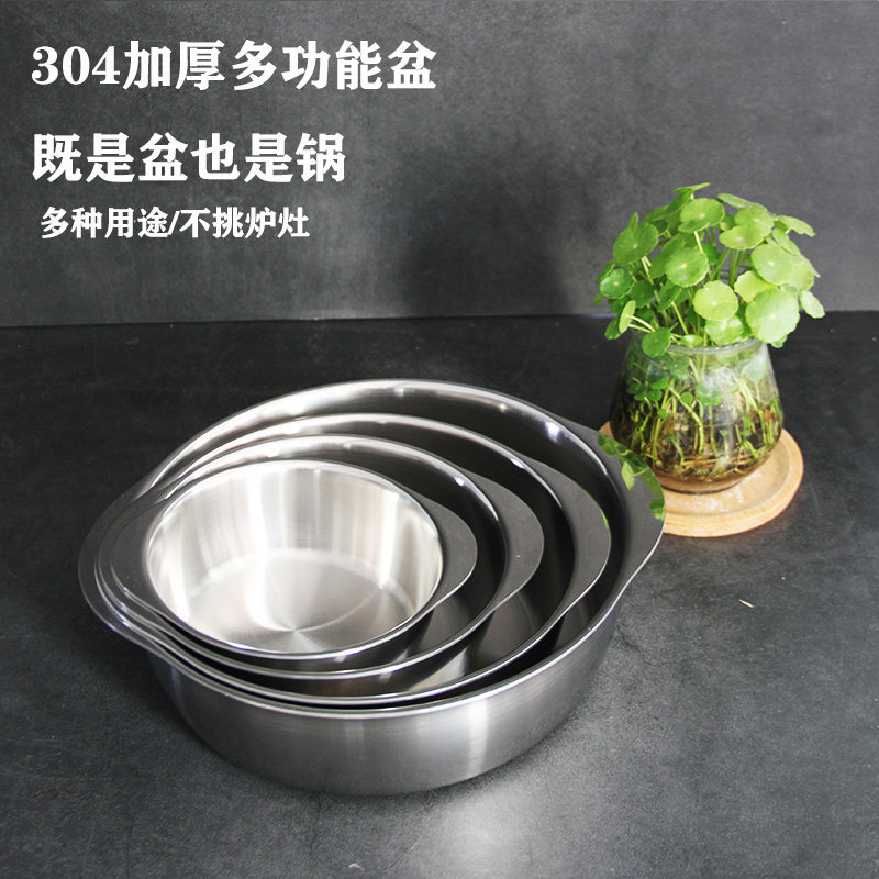 304 stainless steel basin double-ear hot pot boiler with basin-thickened three-layer composite steel frying pan dry pan induction cookers