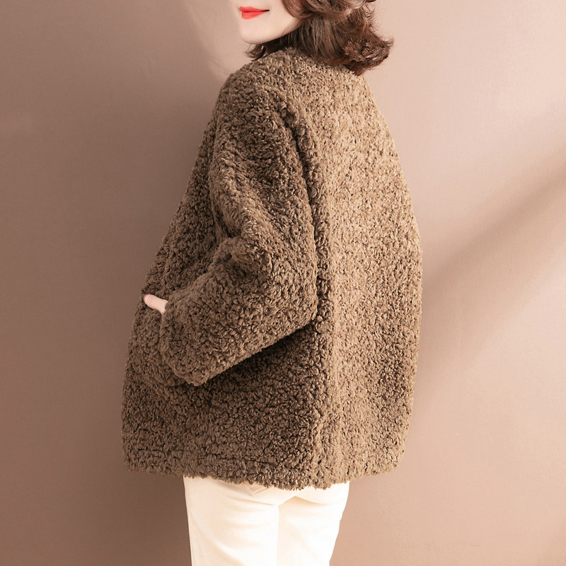 Lamb Wool Jacket Woman 2021 Autumn Winter New Korean Version Fashion Pure color Short Shake Grain Suede 100 Hitch Blouse