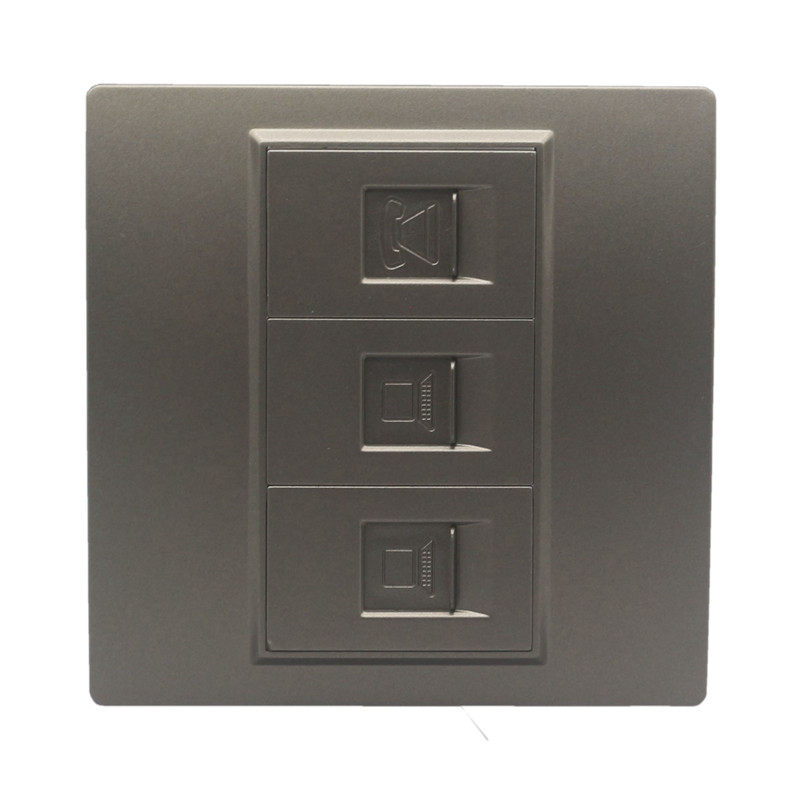Dark gray Type 86 no-call computer phone panel RJ45 Super Class 5 network cable with RJ11 telephone line interface socket