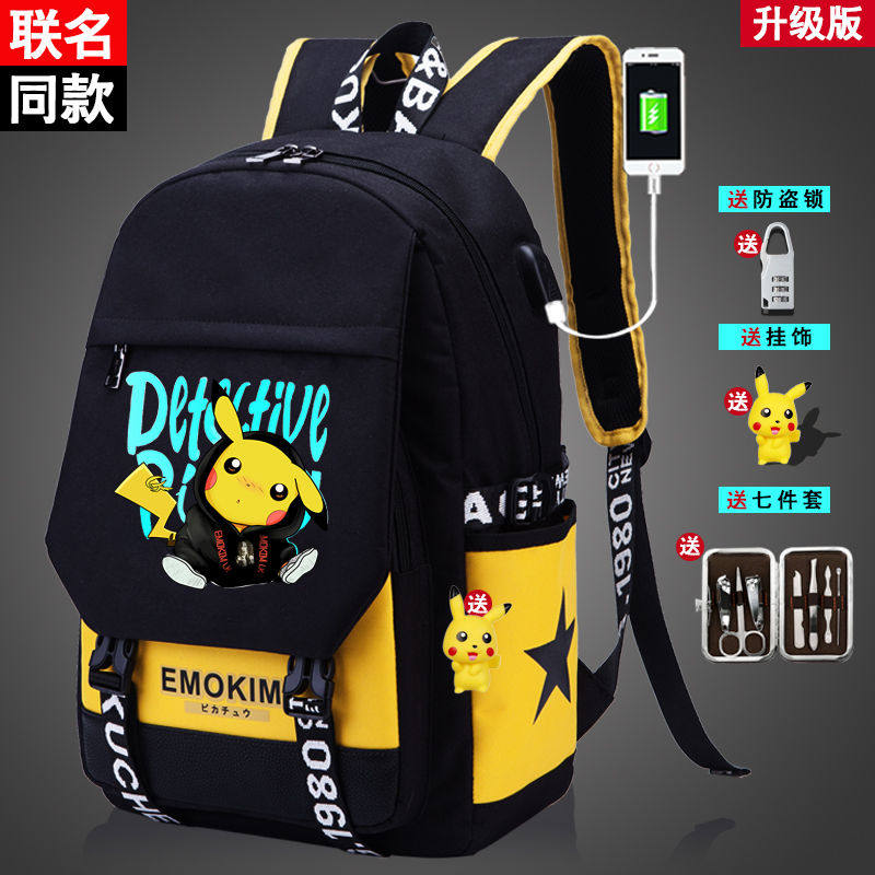 Cartoon Leather Kachu Schoolbags Men And Women Double Shoulder Bag Children Fashion Trends Elementary School Students Big capacity for junior high school students