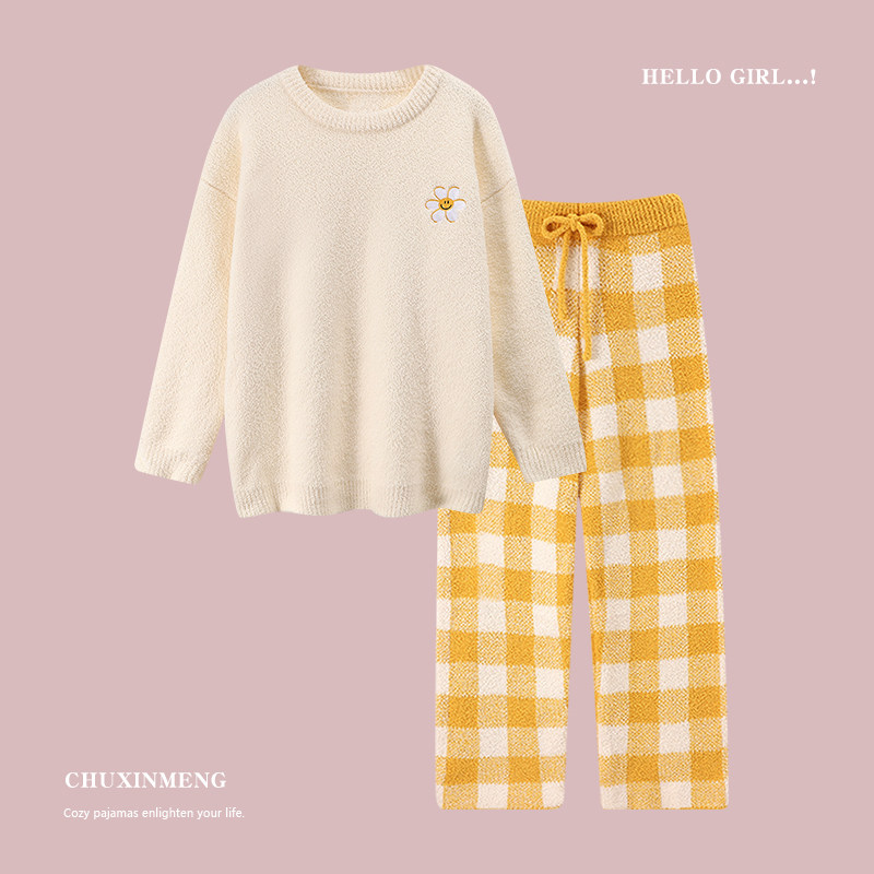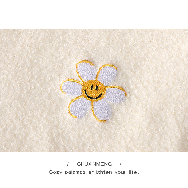 Pajamas ladies autumn and winter long-sleeved coral fleece thickened smiley flower Japanese soft home clothes can be worn outside suit