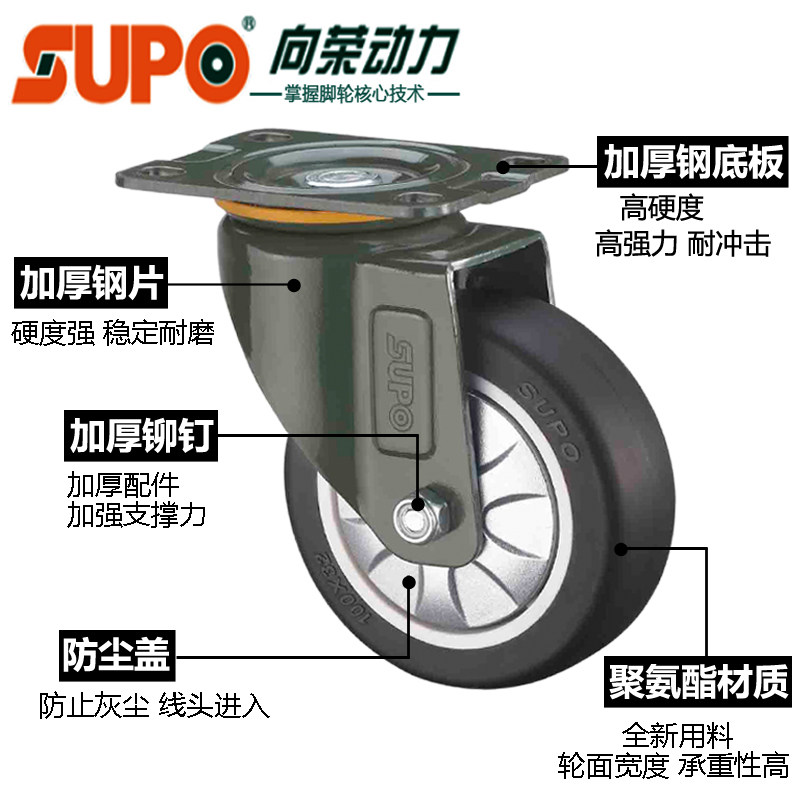 SUPO Xiangrong casters 2 inch 3 inch universal wheel PU4 inch 5 inch wear-resistant silent wheel industrial wheel trolley wheel