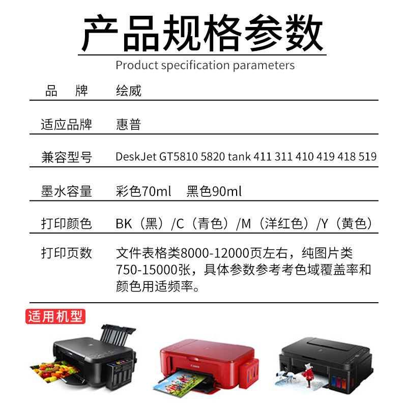 Paint Wei compatible with HP GT51 GT52 53 5820 5810 TANK310 311 318 319 410 411 418