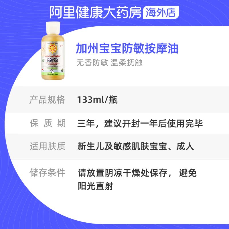 California Baby Organic Massage Oil Body Moisturizing Oil Baby Anti-Sensitive Touch Soothing Hypoallergenic 133ml