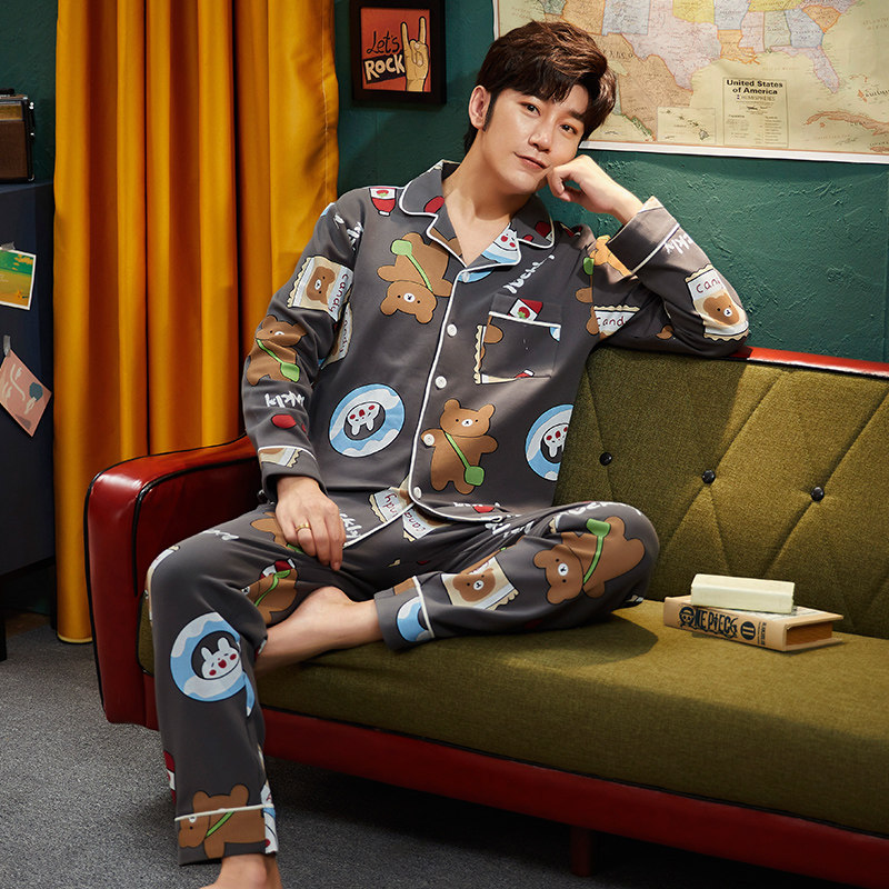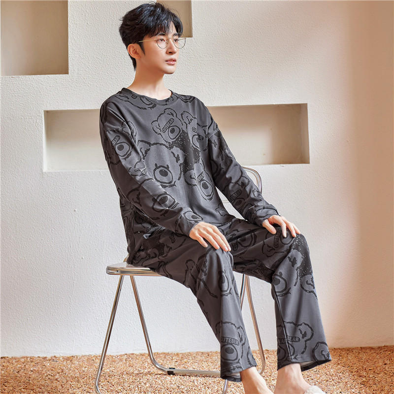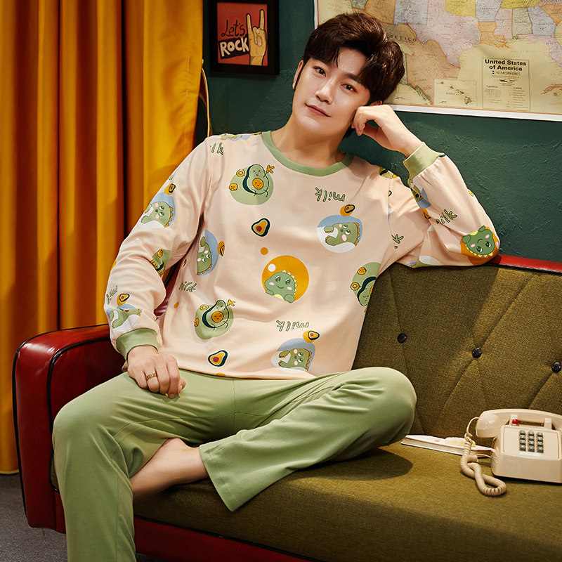 Pyjamas Men's autumn winter style pure cotton long sleeves personality wave to blame full cotton spring and autumn trend fashion winter home clothes suit