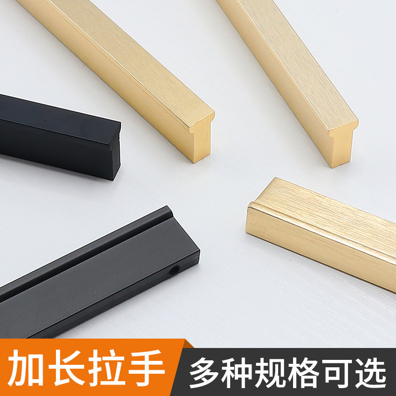 Minimalist wardrobe door integral cabinet drawers doorknob customised lengthened aluminium alloy black gold strip t shaped handle