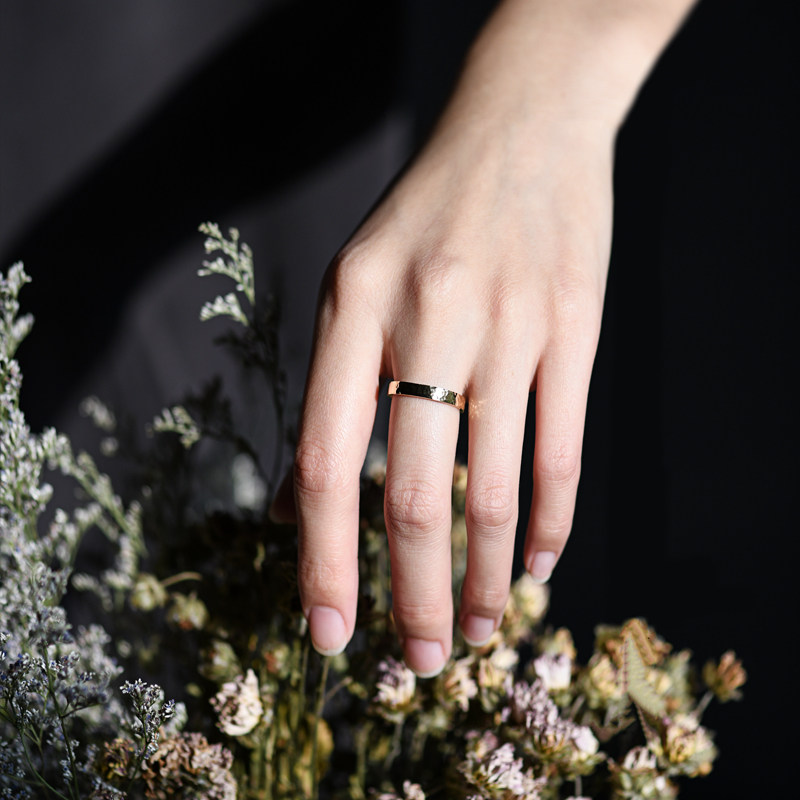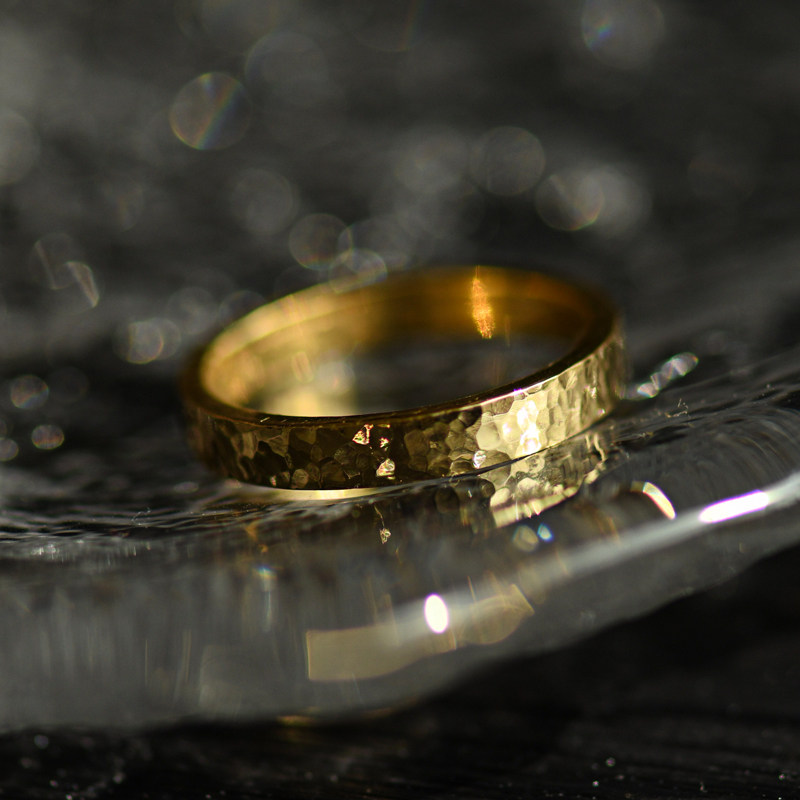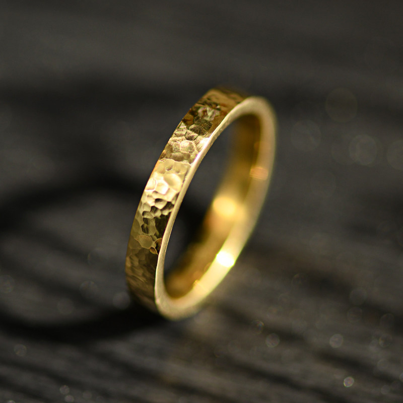 Hammer eye pattern plain ring 18k gold ring au750 gold color gold rose gold plain circle men and women wedding ring jewelry