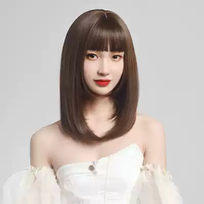 Wig female long straight hair buckle inside the whole top full headgear repair face long hair natural air bangs clavicle hair net red