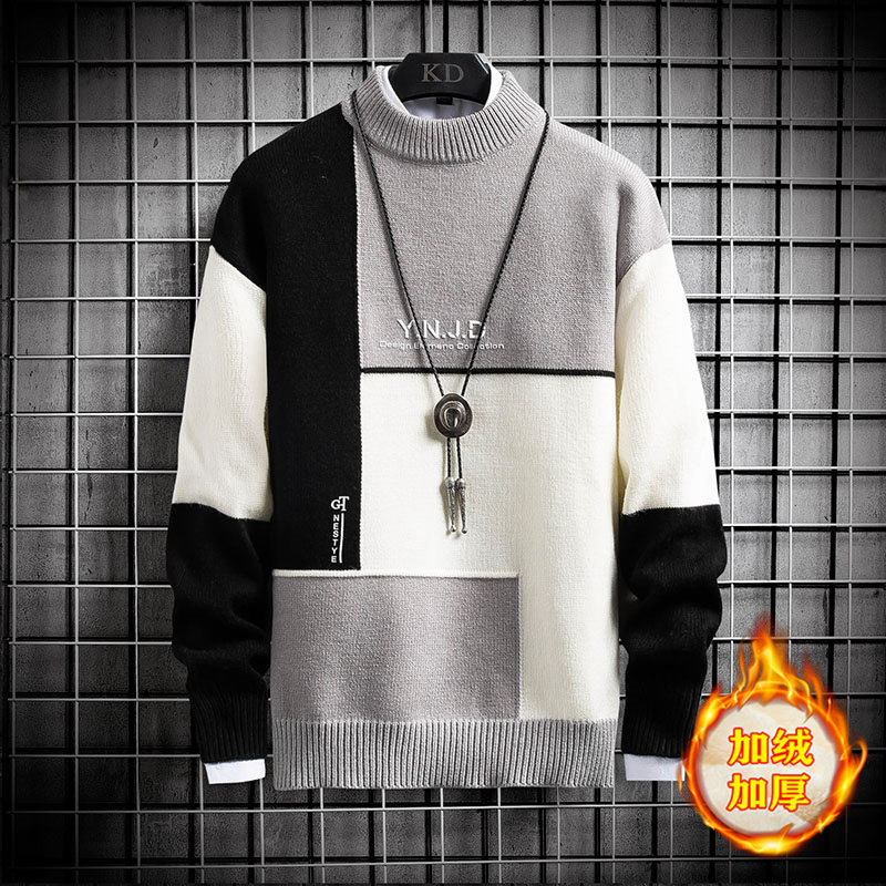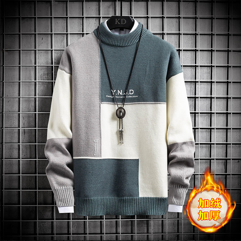 Boy gush thickened sweater jacket head CUHK's Han version of the men's fat half-high collar youth winter sanitary clots