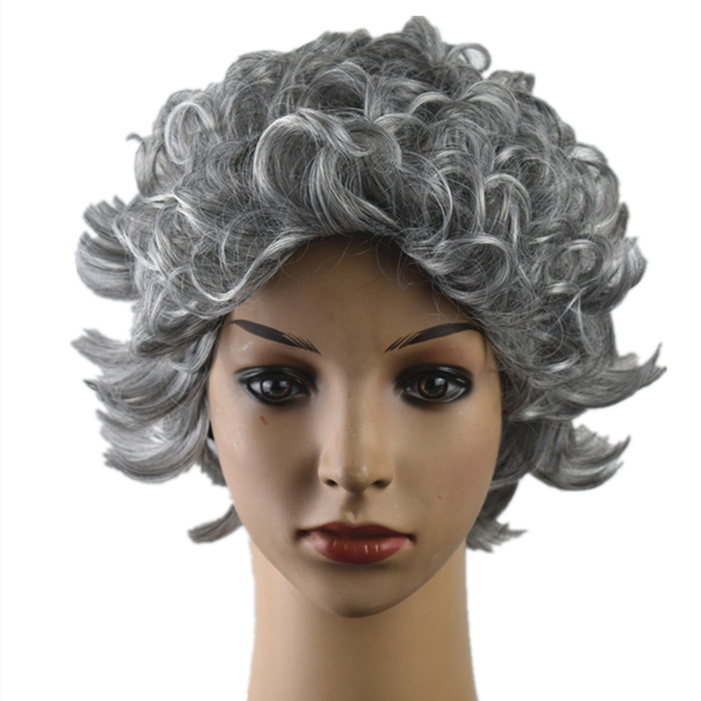 High Wen Silk Grandma Wig Wig Accessories Performing Dress Prop Glasses and Rod Two Hand Wig Nets