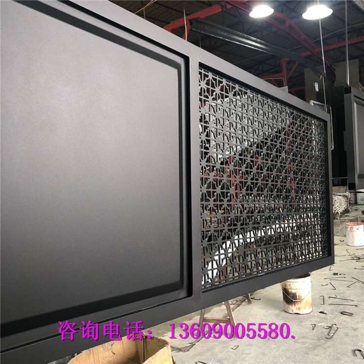 Metal carved plate Chinese aluminum alloy lattice hollow engraving board black screen style grid partition material customization
