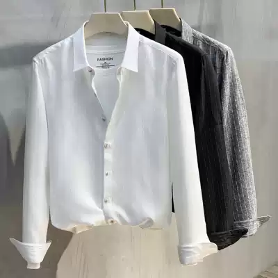 Ekecel2021 Spring and Autumn New Men Long Sleeve Shirt Korean Slim Light Business Stripe Casual Shirt Men Tide