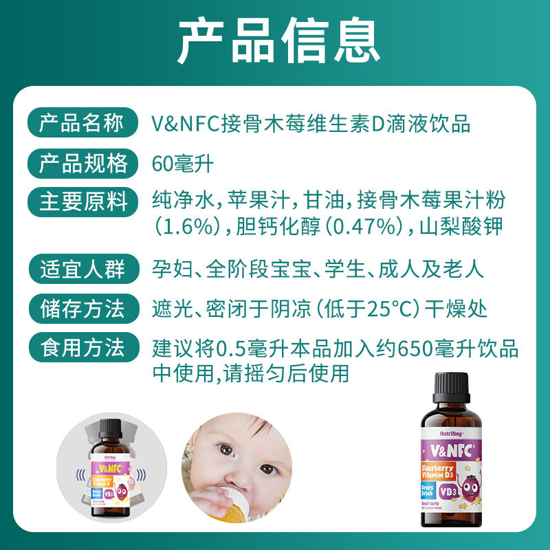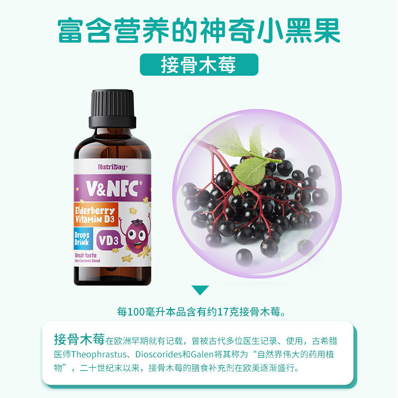 New Zealand imported VNFC Elderberry vitamin D drops Infant and child growth nutrition package