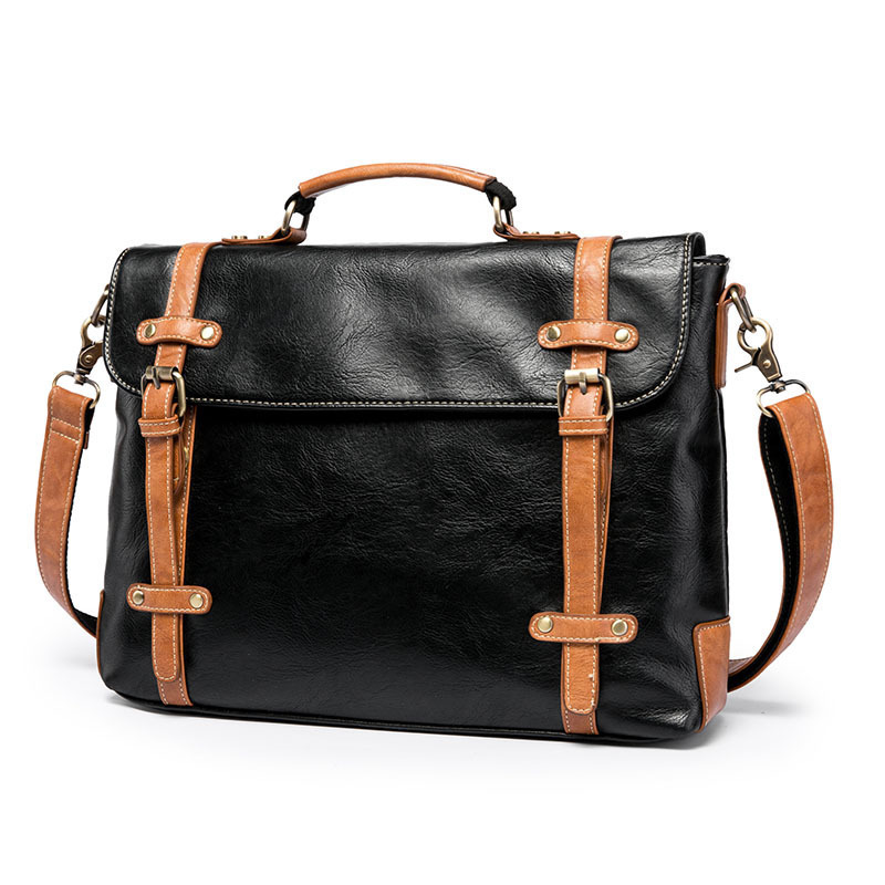 Hong Kong's new square texture Waterproof Men's Briefcase Retro Single Shoulder Bag for Business Inclined Cross Carry-on Bag