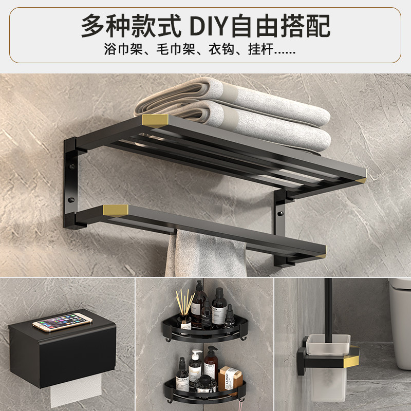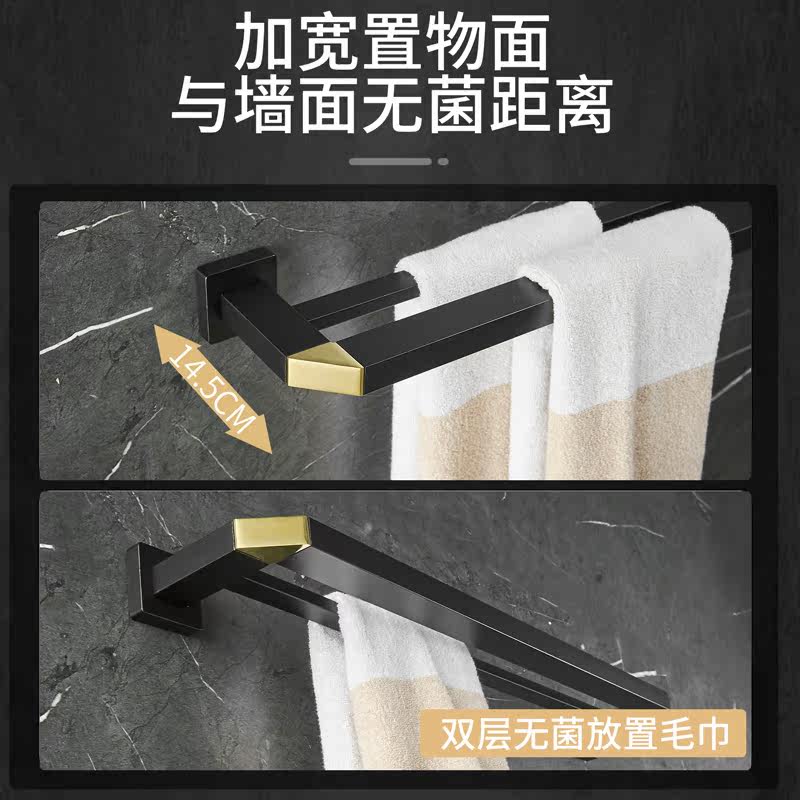 Black Gold Bathroom Hair Towel Rack Wall-mounted Free Wear Makeup Room Hanging Towel Rod Space Aluminum Bath Towels Rack Double
