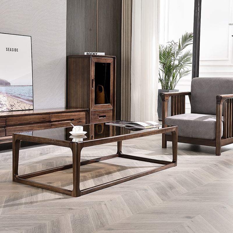 Nordic Simple Solid Wood Tea Tempered Tempered Tempered Temperature Table Small Household Black Walnut Tea Table