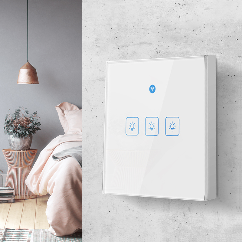 Easy micro-link intelligent wireless WiFi dual control switch 86 wall touch three open panel small art little love voice control