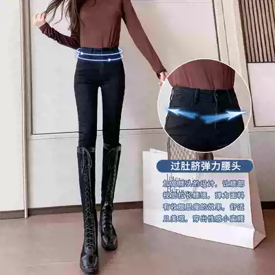 Tobacco gray jeans women spring and autumn 2021 New slim slim stretch boots pants outside wear high waist tight narrow pants