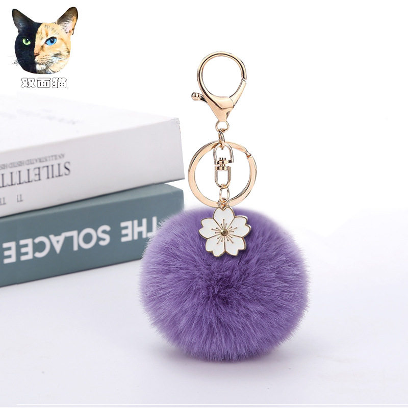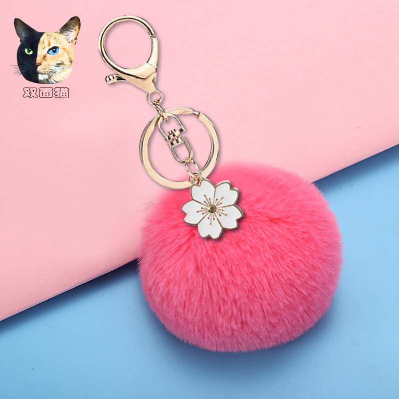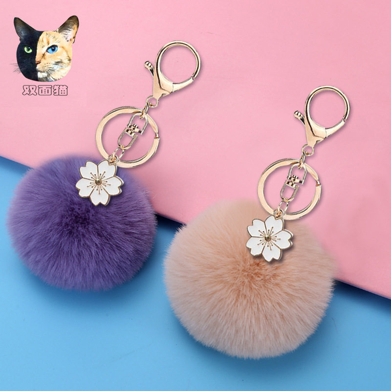 Bauhinia cute fur ball keychain creative anti-rex rabbit plush bag pendant car key chain pendant ins