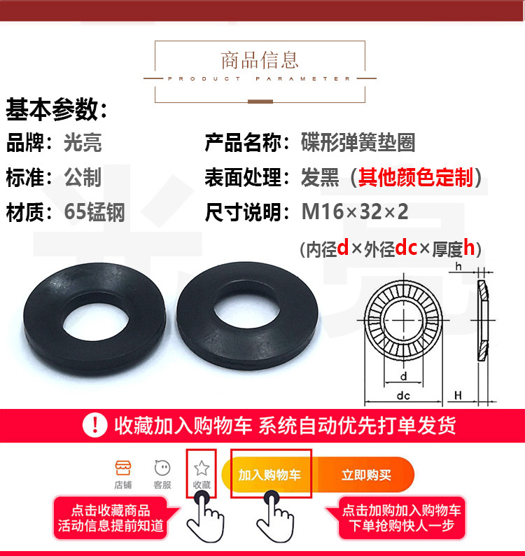 Factory direct disc spring gasket spot bowl-shaped cushion concave-convex butterfly round washer M4M5M6M8-M30