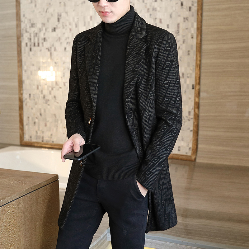 Rich bird winter woolen coat men's coat mid-length version Korean version of the slim business casual thickened woolen windbreaker trend
