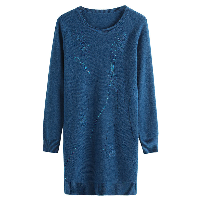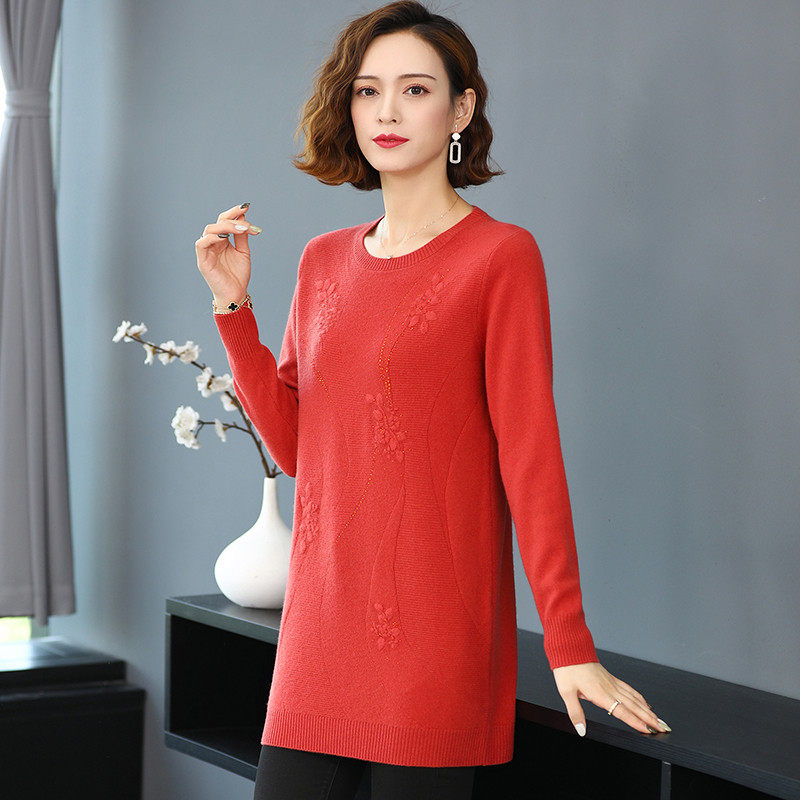 Hengyuanxiang mid-length sweater women's large size loose round neck mother 100 pure wool sweater knitted bottoming shirt autumn and winter