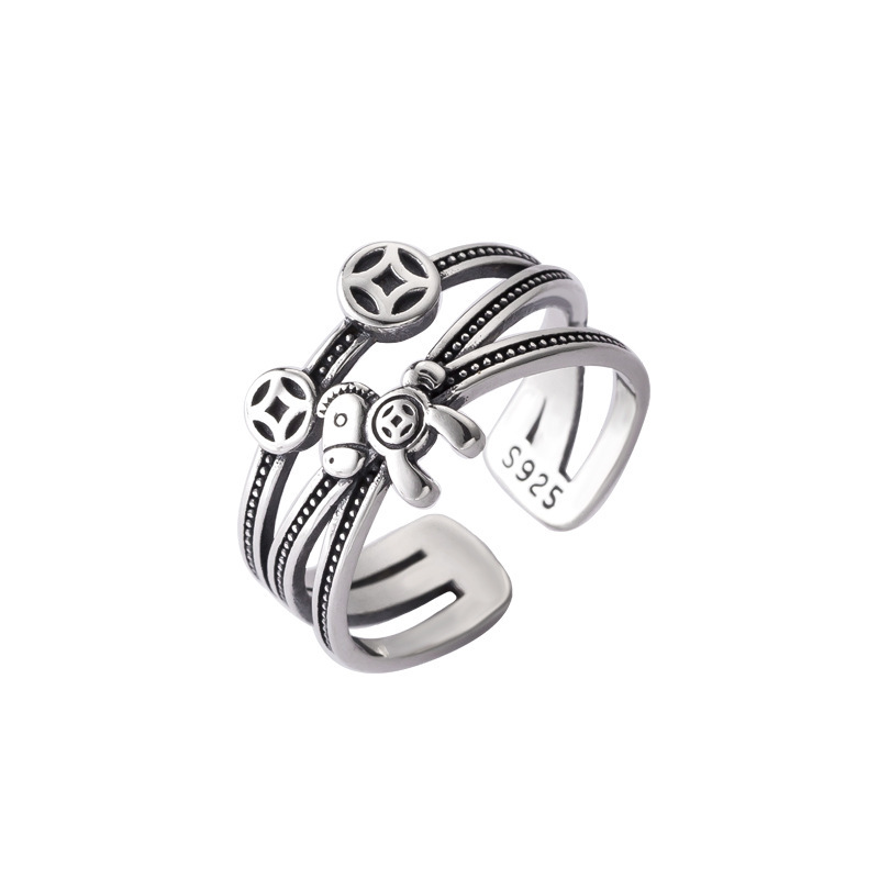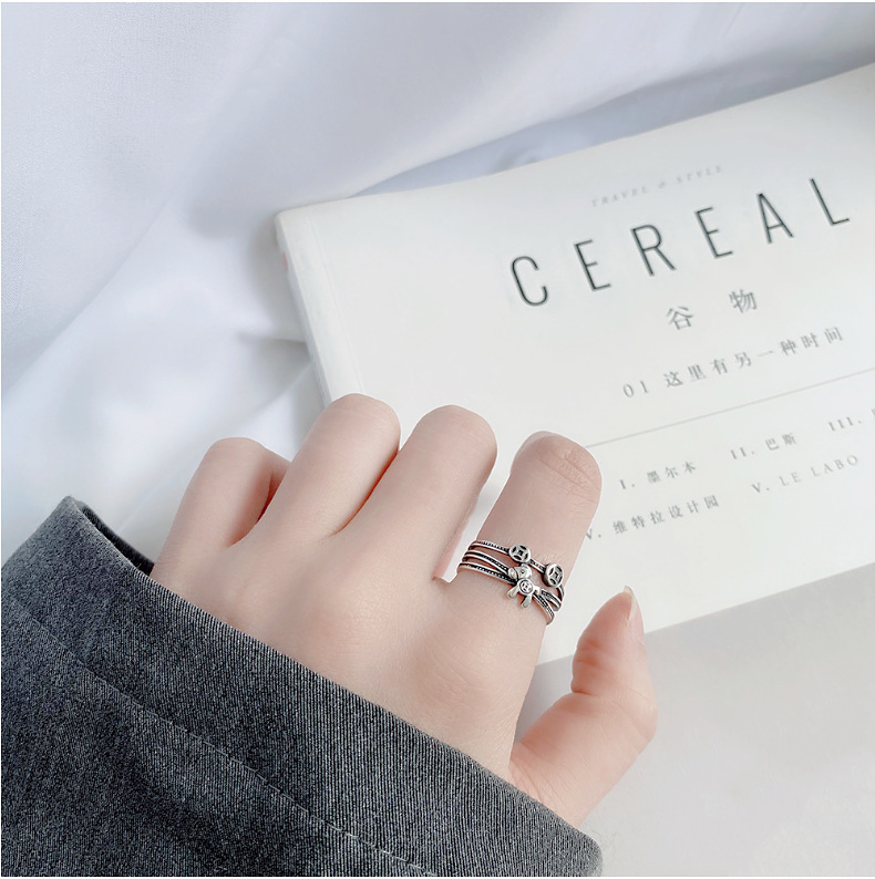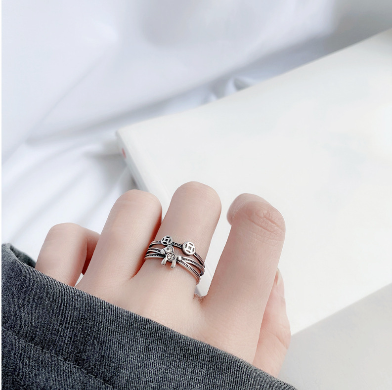 925 sterling silver lucky money transfer immediately rich flower ring female index finger net red hipster handmade ring retro country style