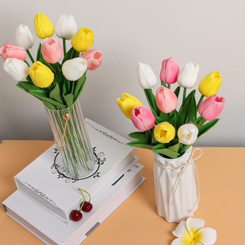 ins wind PU feel tulip simulation bouquet fake flower drying flower living room dining table decoration room decoration flower decoration