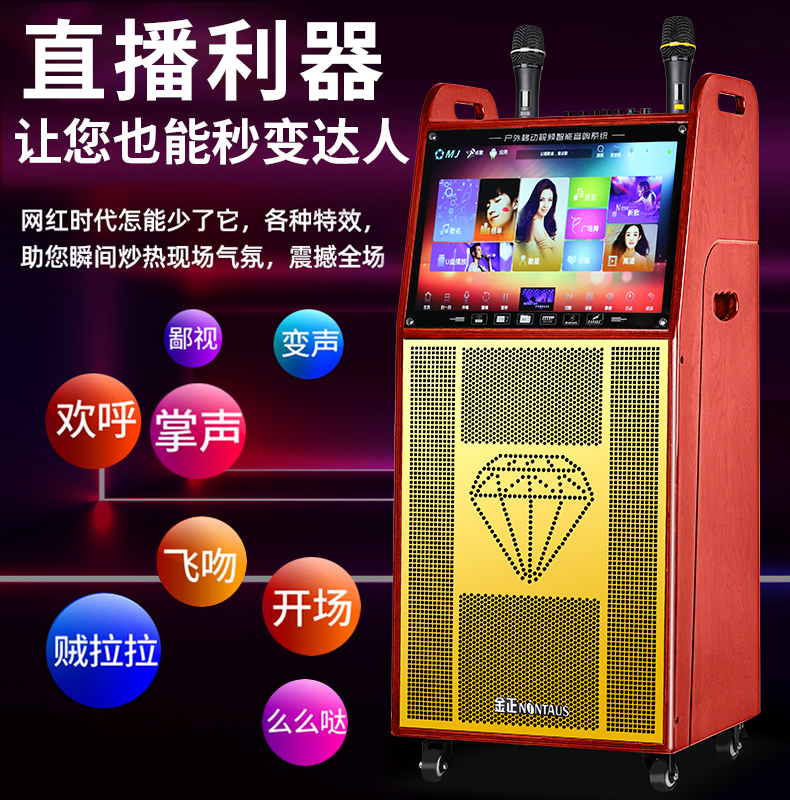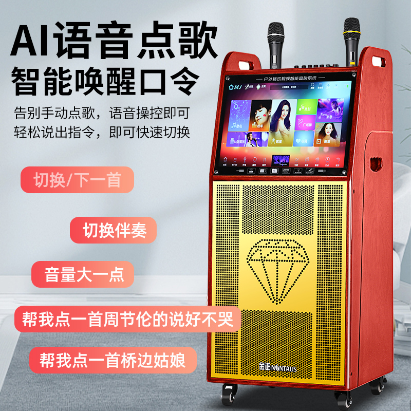 Golden Zheng H22 Square Dance Sound Belt Display Screen Big Outdoor Performance Home Point Sing K Song Wireless Microphone High Power Three-frequency Frequency Bass mobile KTV Rover speaker film All