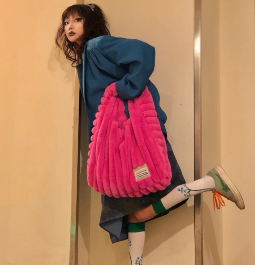 ICEONME Y2K fun large-capacity wide shoulder strap plush shoulder bag single shoulder bag that you have not seen before