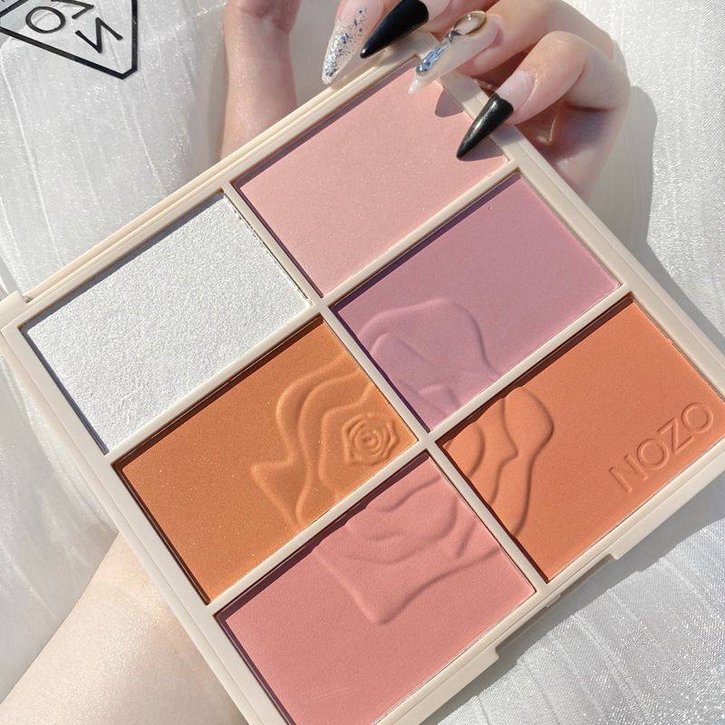 Six-color repair plate shadow highlight blush all-in-one plate flash powder face brightening beginner dual-use recommended by Li Jiaqi