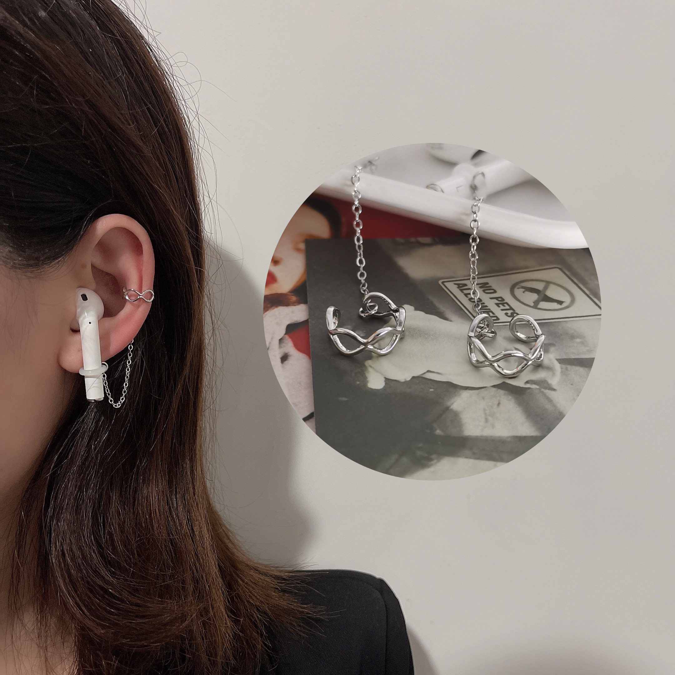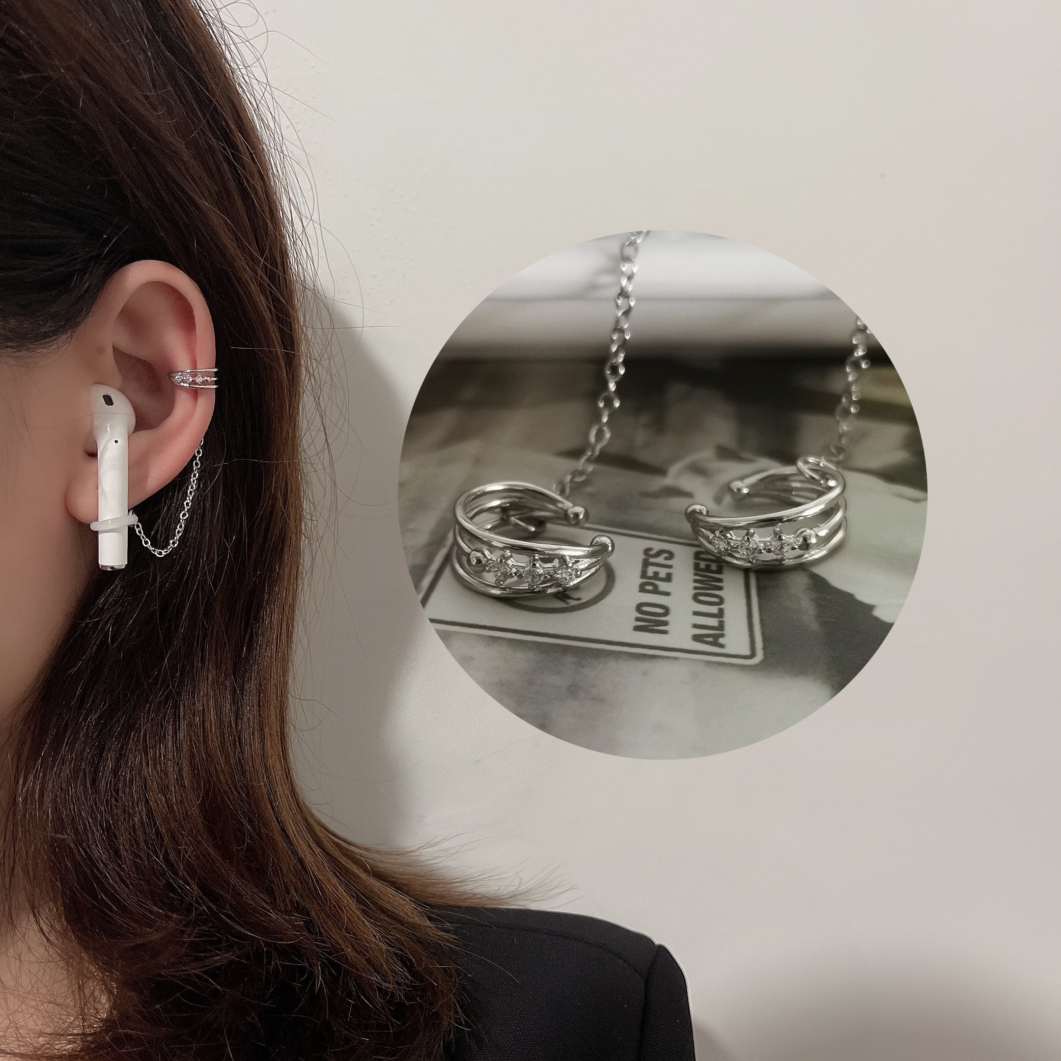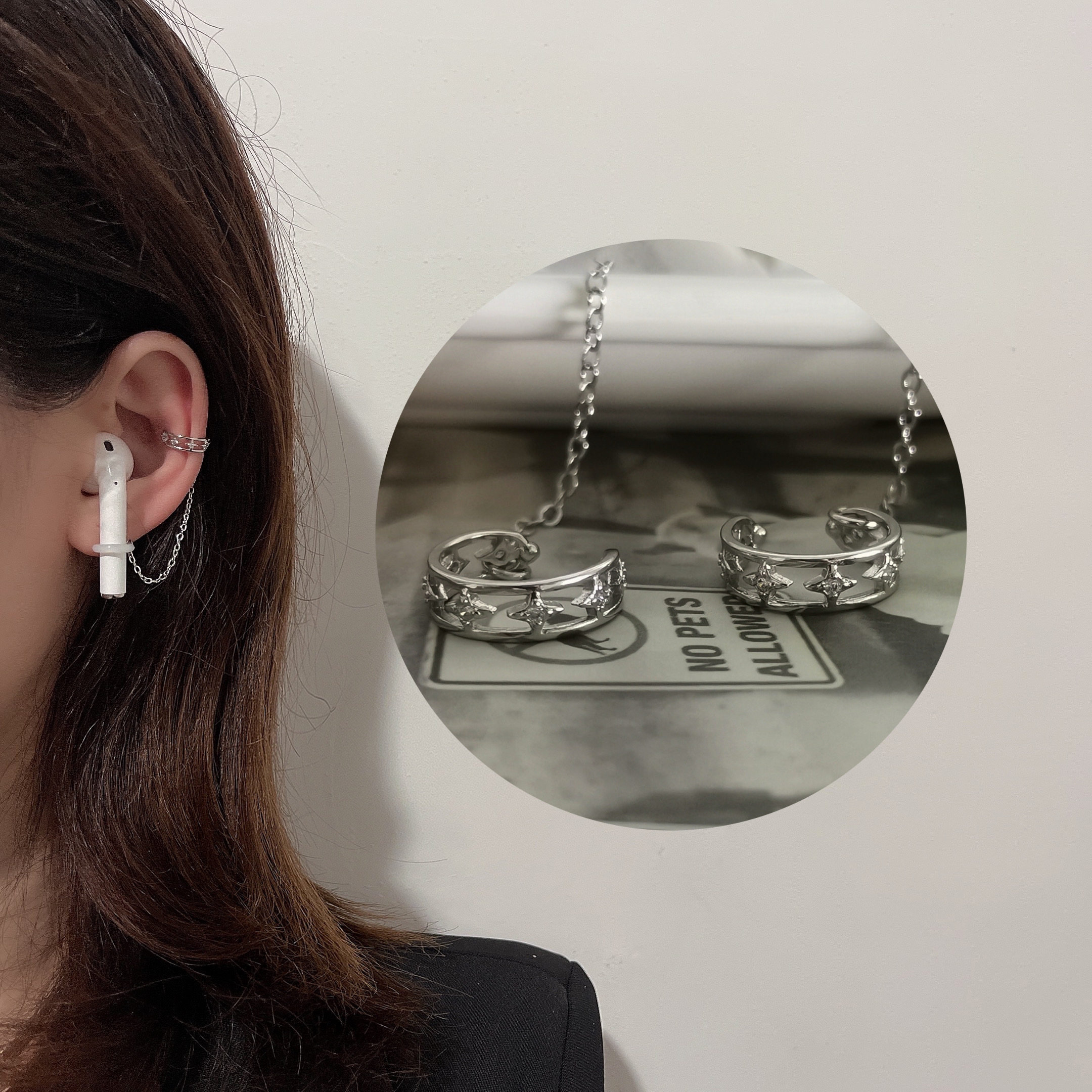 Silver Cross-Diamond Ear Clips A pair of silver three-layer Diamond Clips with silver hollow star clamps for a pair of silver double-layer ear clamps for a pair of silver wave ear clamps