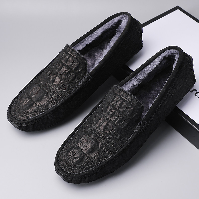 2022 winter new beanie shoes men's plus velvet leather Korean version lazy all-match crocodile pattern 37 small size casual cotton shoes