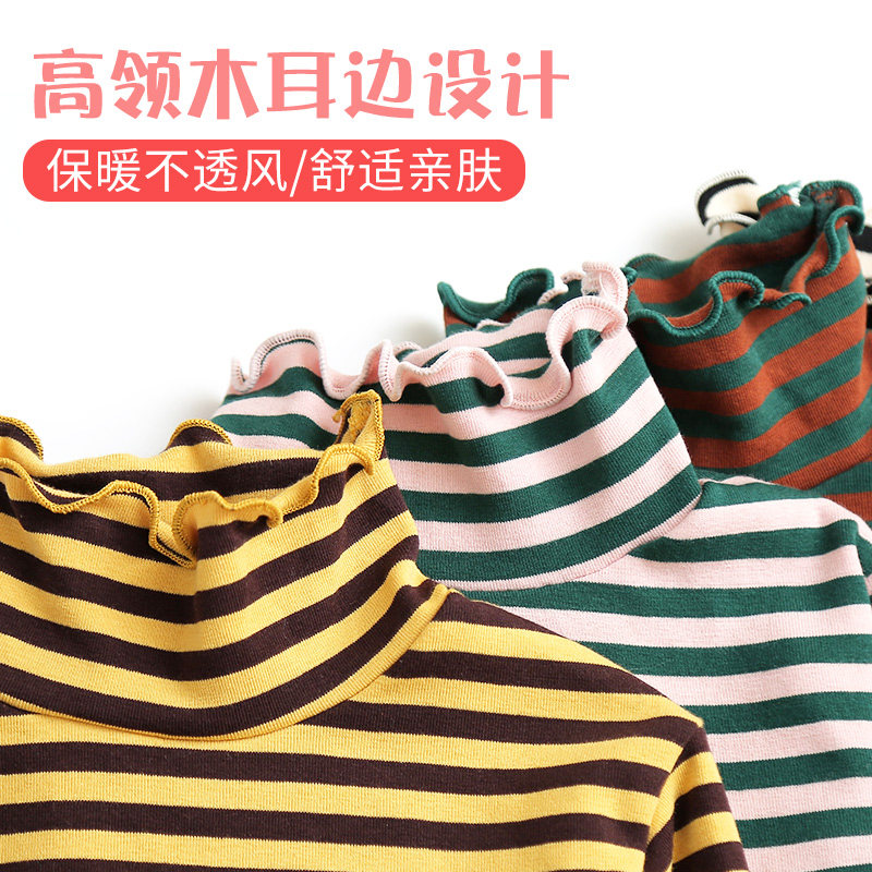 Girl semi-high collar pure cotton inside lap clothes autumn and winter children Long sleeves T-shirt with female baby blouses big children