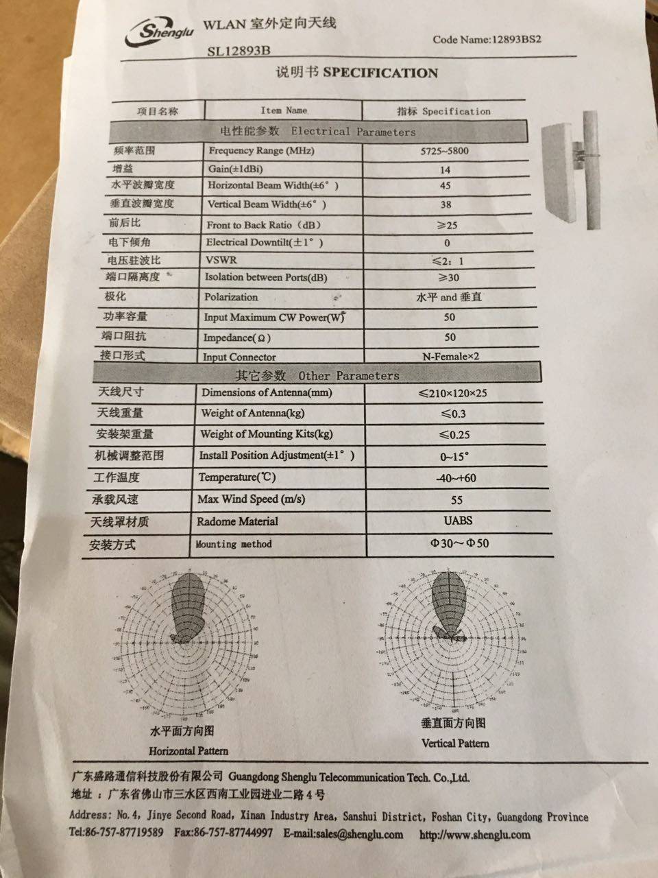 Shenglu 5 8G Dual Polarization Panel Antenna Dual Polarization Directional MIMO Panel Antenna 2x14dBi 5GHz