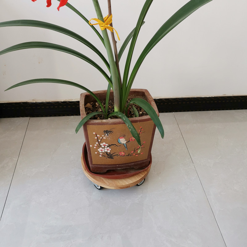 Solid Wood Moving Flower Pot Nursery Tray With Silent Universal Wheel Thickening Base Roller Flower Racks Bottom Nursery Round Rectangle