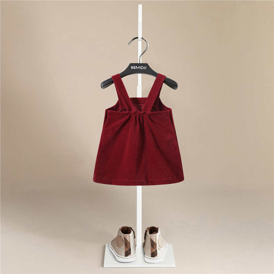 Burmigie Boy Dress Girl Braces Skirt Spring Autumn Clothing Wine Red Light Core Suede Foreign Air Baby Boy Out of Dress Cotton-Taobao
