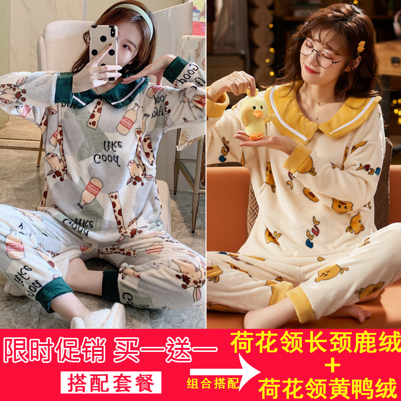 Pregnant women's pajamas autumn and winter cotton coral confinement clothing postpartum thickening and velvet December breastfeeding breastfeeding pregnancy
