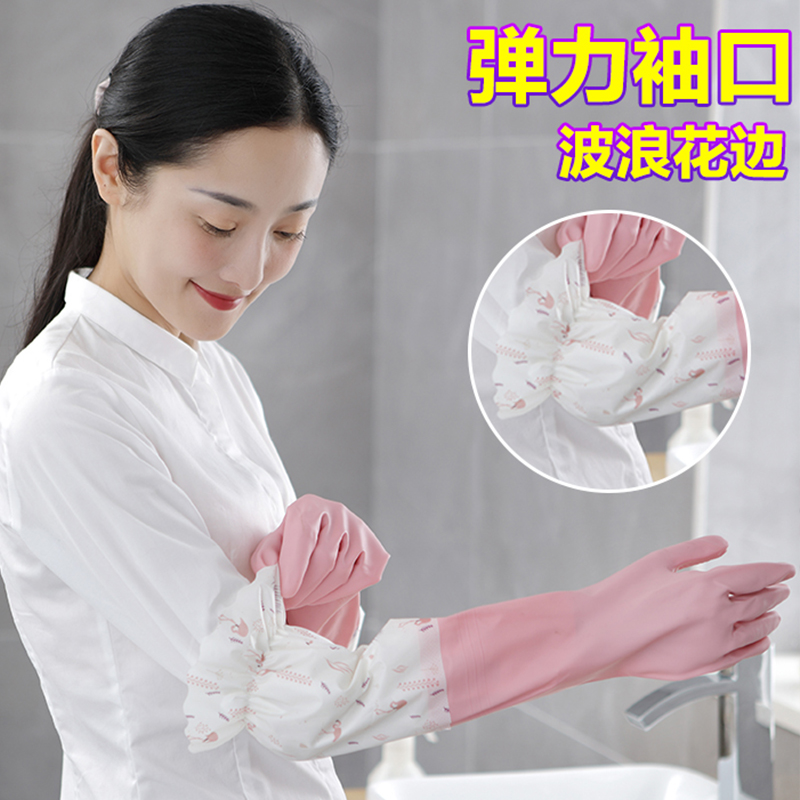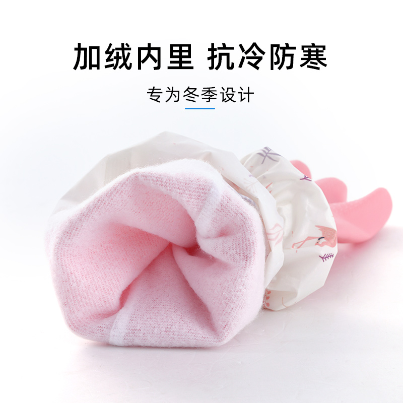 Kitchen dishwashing waterproof warm plus plush thickened gloves Home laundry cleaning non-slip do housework cooking glue gloves