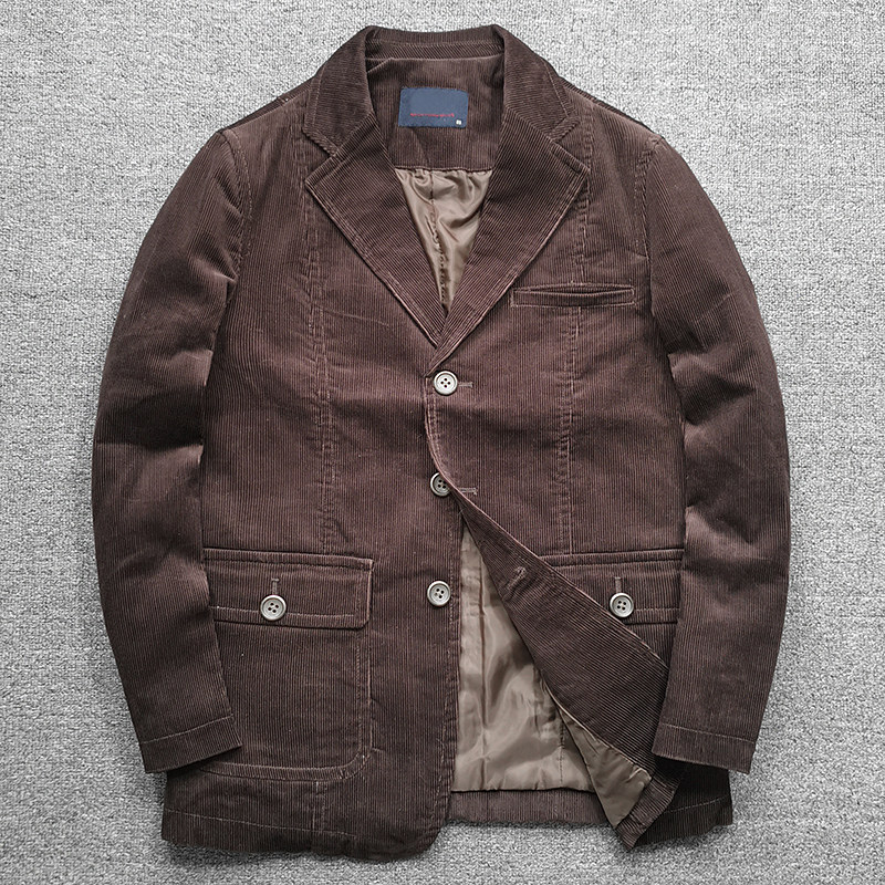 Not to be missed High-end men's corduroy suit business slim velvet suit cotton single blazer
