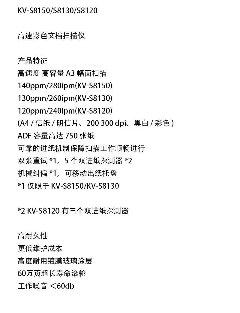 Panasonic KV-S6100 S6110 S6120S 8120S8130S8150 Scanner A3 Color High Speed Double Sided