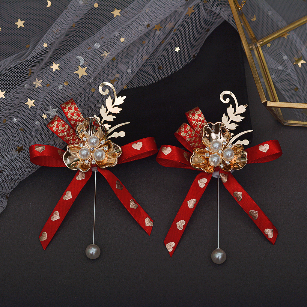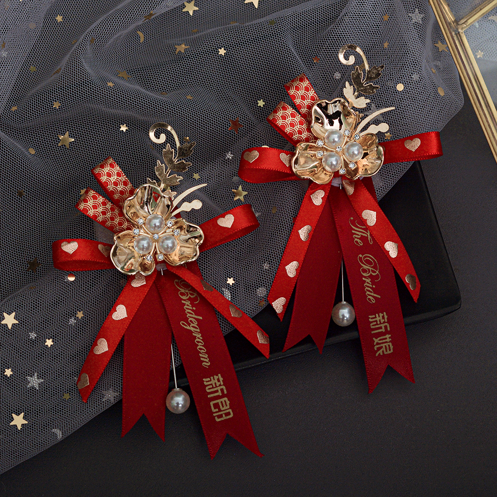 A single corsage (others call message remarks) a set of wine red (bride and groom) a set of wine red (bridesmaids and groomsmen) a set of wine red (father and mother) a set of wine red (father-in-law)