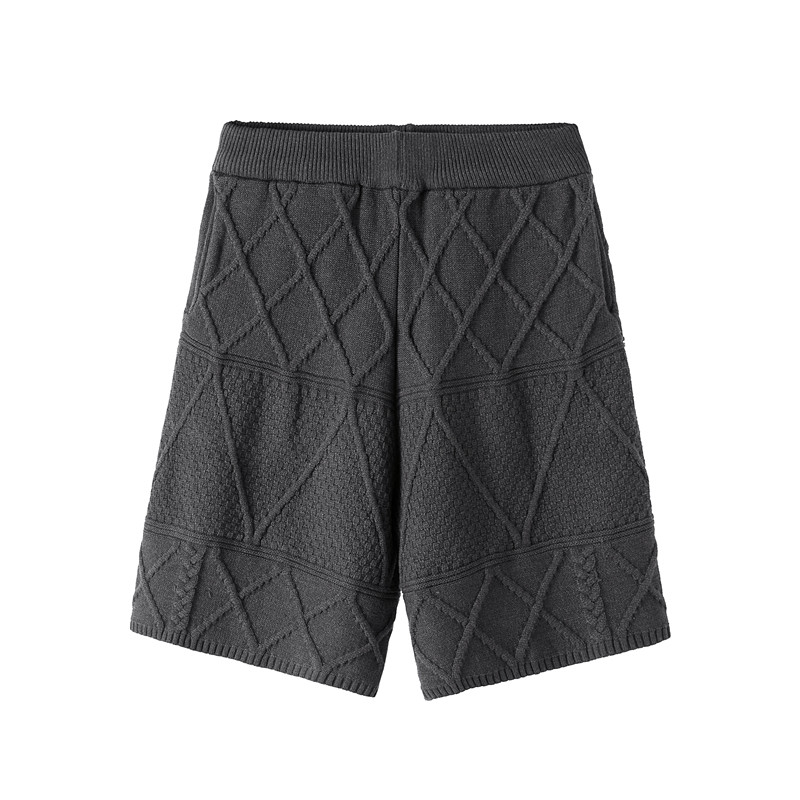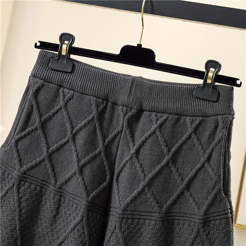 Knitted wool shorts women's autumn and winter 2021 new thickened outer wear black pants loose high waist thin boot pants