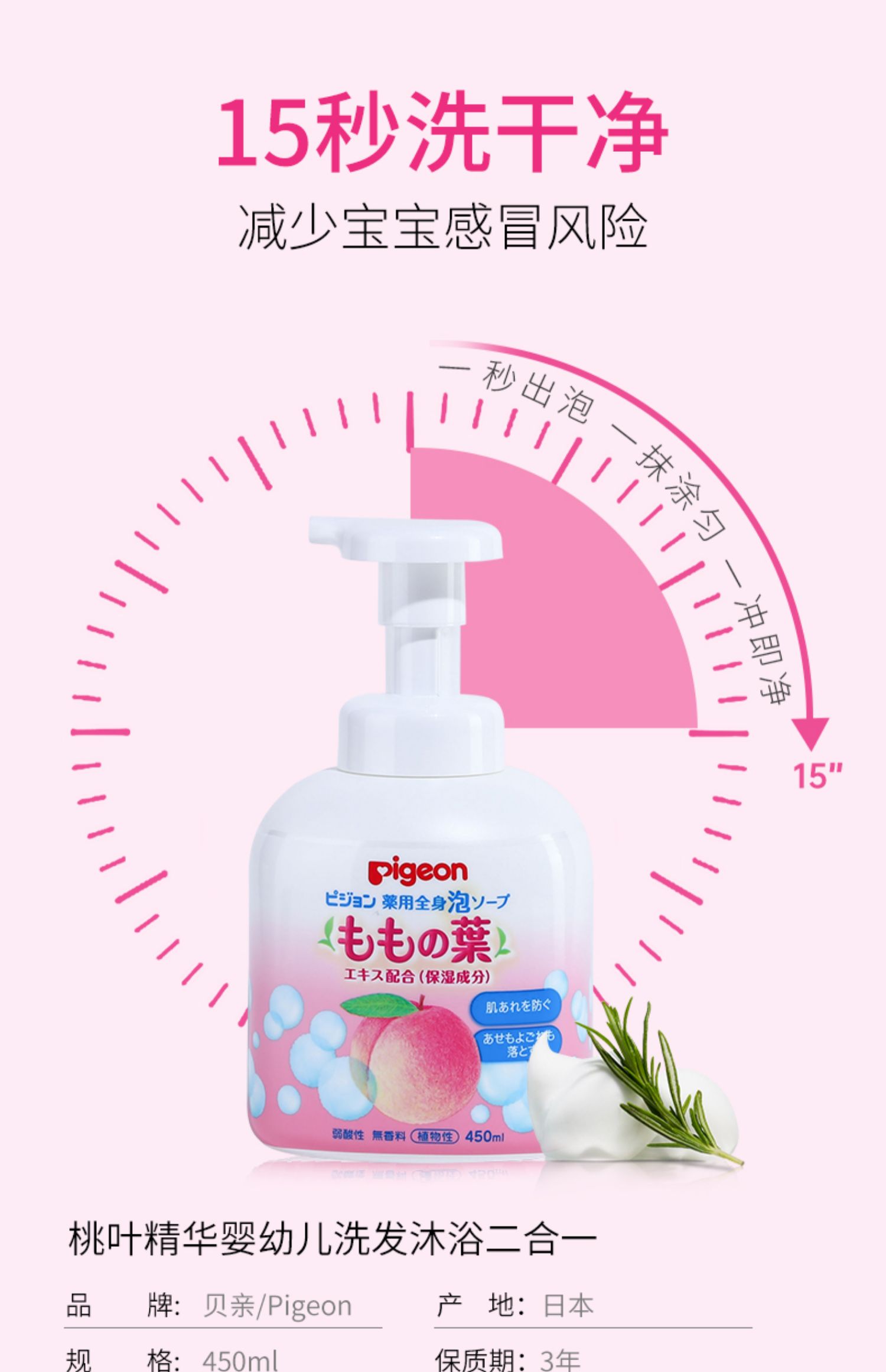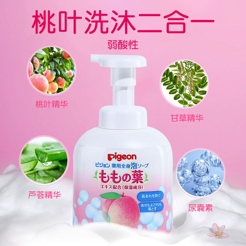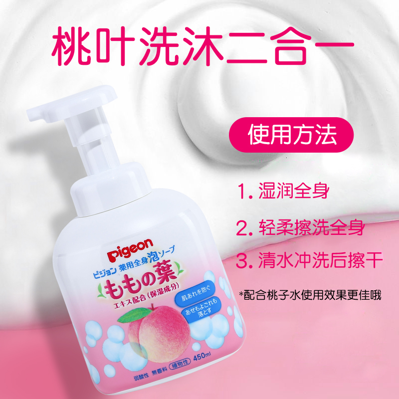 Japan Pigeon Beiqin peach two-in-one shampoo shower gel foam baby 450ml baby