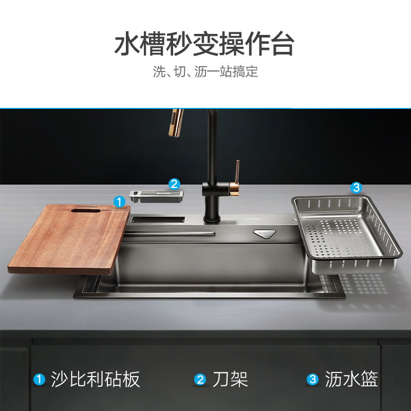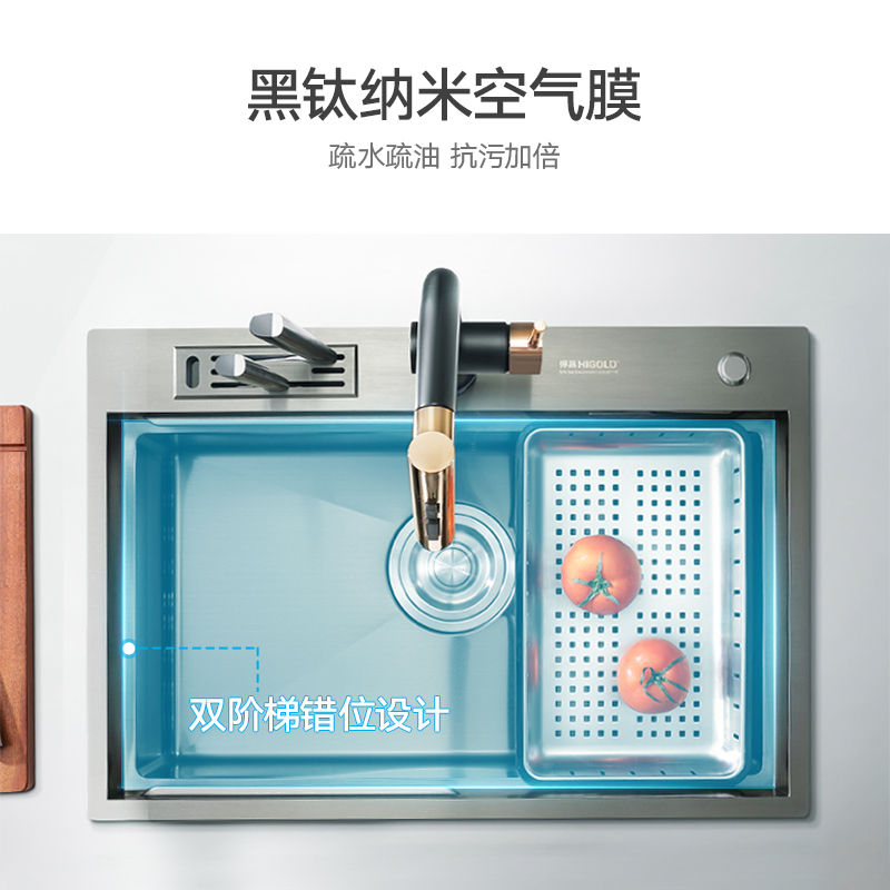 Hangao kitchen black titanium nano handmade sink 304 stainless steel sink table under the sink set