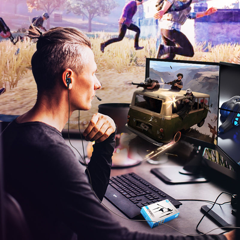 HP HP electric race headphones In-ear Earplugs Computer Wired Ear with Mac Noise Reduction microphone Heavy bass Eat Chicken Exclusive K Song Applicable to Huawei Apple Phone High Sound Quality Headphones