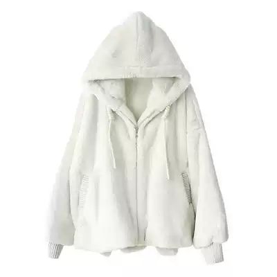 Sandro Tonali lamb coat women 2020 winter New Loose medium and long version thick plush hooded sweatshirt