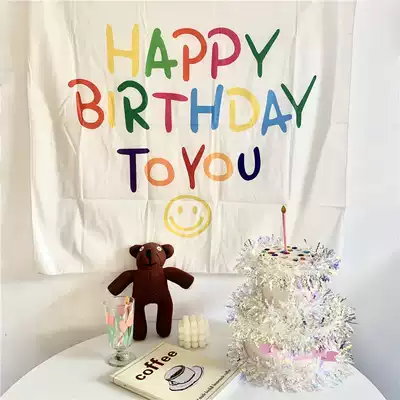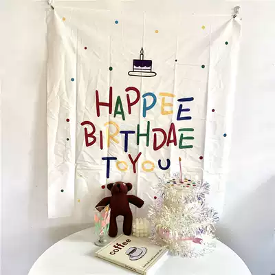 ins Korean birthday flag background cloth poster background wall Baby children's party photo props decoration