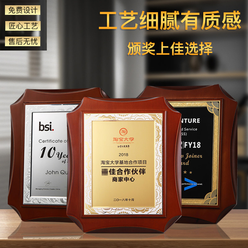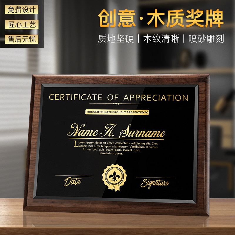 Authorisation card honours cards to be made with gold leaf medal plaque Making wood Bronze Wood Certificate Agent Tailor Made